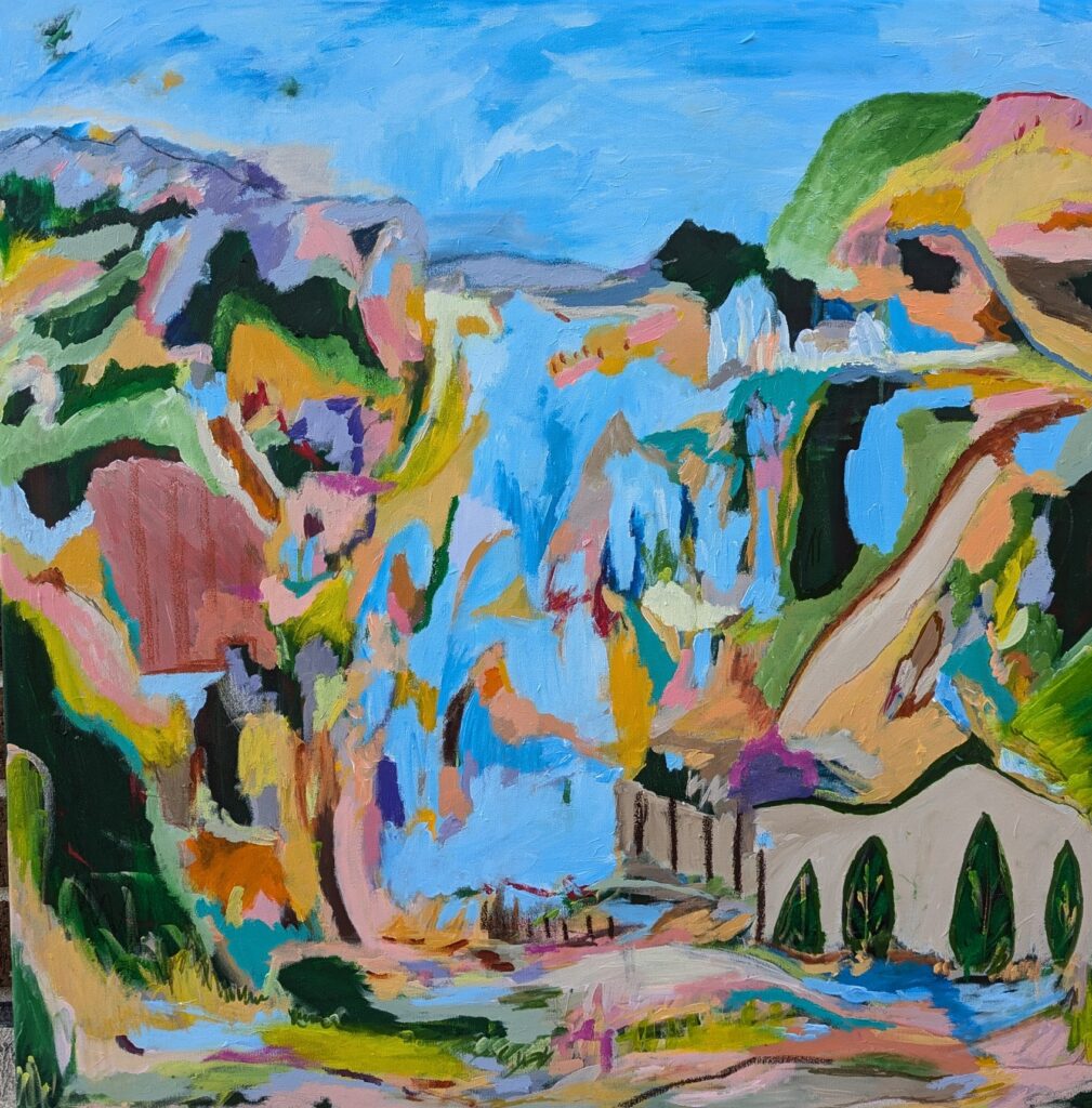 My studio is a space of freedom, intuition, and creativity—a place where I can fully immerse myself in the process of painting. It is filled with canvases in different stages of completion, jars of bold acrylic paints, and my sketchbooks, which hold spontaneous drawings of landscapes, objects, and memories that often find their way into my work.