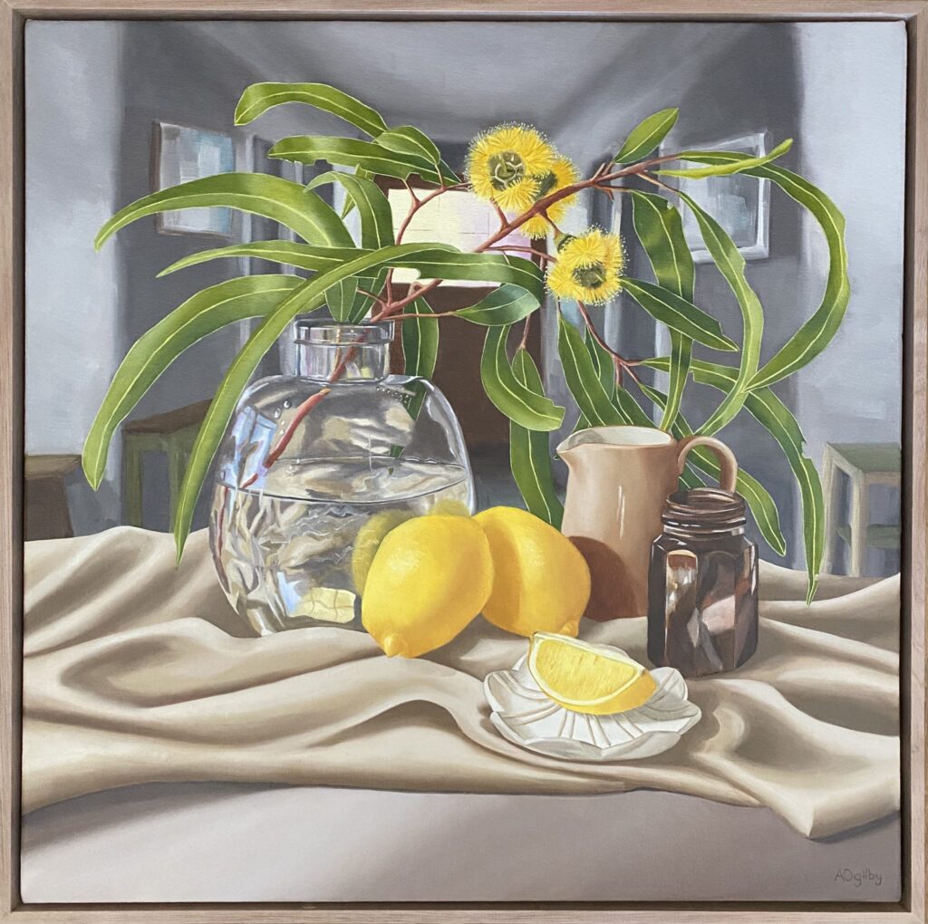 Amanda Ogilby is a Margaret River artist known for her atmospheric and refined still life oil paintings. Her work balances a modern aesthetic with traditional techniques, showcasing a strong foundation in representational realism and a sensitivity to light, tone and detail.