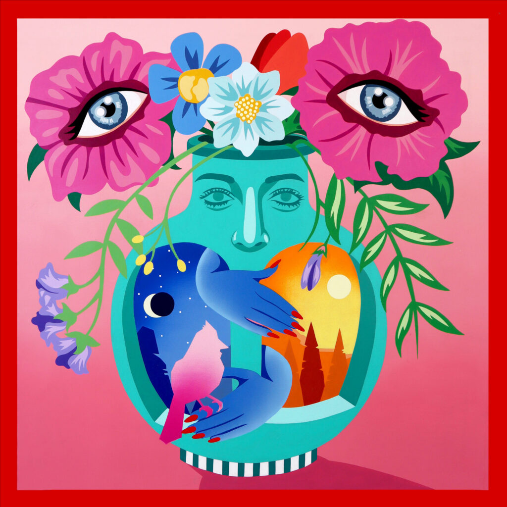 Internationally-recognized Australian painter Britty Em creates bold large-scale acrylic pieces whose symbols and stories charm and challenge viewers through a combination of playfulness, nostalgia, and treatment of serious themes, including loneliness, consumerism, and the unseen facets of everyday life.