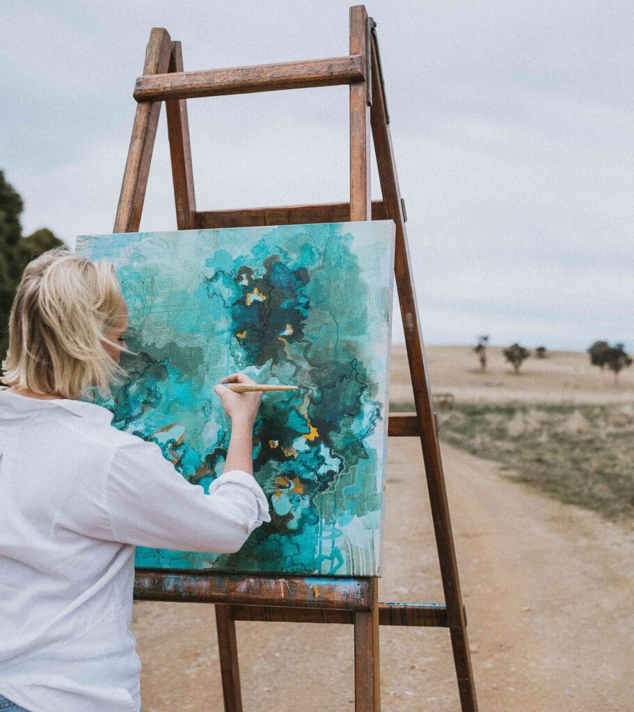 Carina Chambers (@carinachamberscreative) is a semi-abstract landscape artist based on a hilltop cattle farm in Central West NSW. Surrounded by vast skies and rolling hills, her work is deeply influenced by the land she grew up on. As the daughter of farmers, Carina carries with her a lifelong connection to the rhythms of nature — and her father’s voice asking, “What can you see? And what does it mean for our future?”