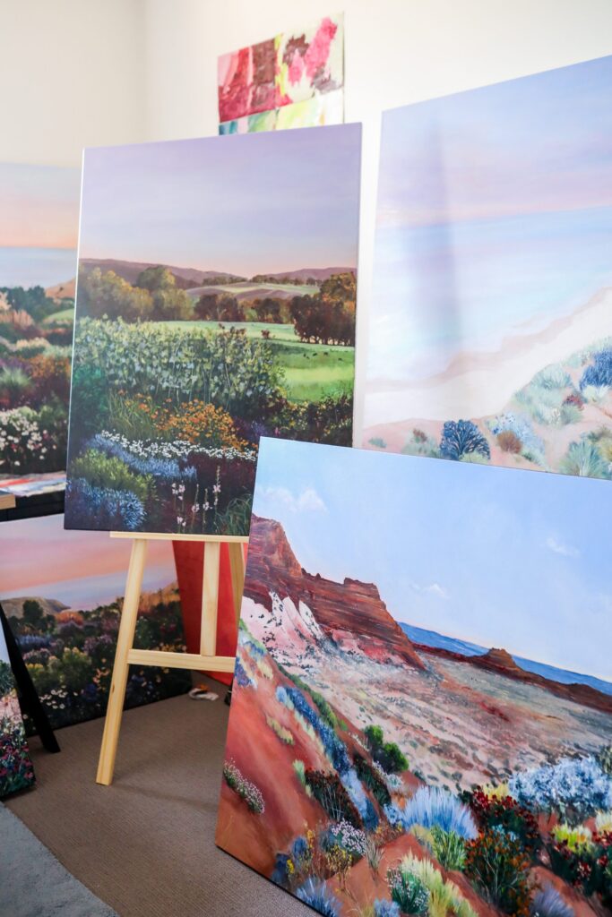 Sydney artist Heidi Maunder creates amazingly multifaceted, highly colourised landscapes and abstracts that reflect her deep-seated passion for the unique Australian environment. Focused on the earthy tones and textures of the desert, the visual dynamism of the coastline and Australia’s naturally occurring flora, she utilises a combination of both memories and photographs of these locales to produce astounding visual scenes. Additionally, Heidi’s love for travel and her personal perceptions of nature greatly influence her creative process and what ultimately emerges onto her canvas.