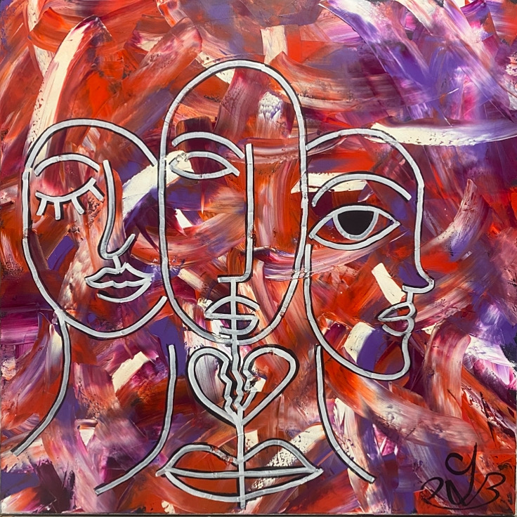 I work primarily with oil and mixed media on canvas, using abstract expressionist mark-making alongside minimalist figurative line work. Oil allows me to build depth, atmosphere, and emotional weight through layering and gesture, while mixed media gives flexibility in texture and contrast. I’ve chosen these mediums because they support a slower, more intuitive process — one that mirrors the emotional states I explore in my work. The ability to build, obscure, and reveal over time is essential to how my paintings develop. Combined with restrained line work, these materials allow me to balance intensity with stillness, and to create works that feel both visceral and contemplative. Each painting is completed alongside an original poem, extending the emotional language of the work beyond the visual and into written form.