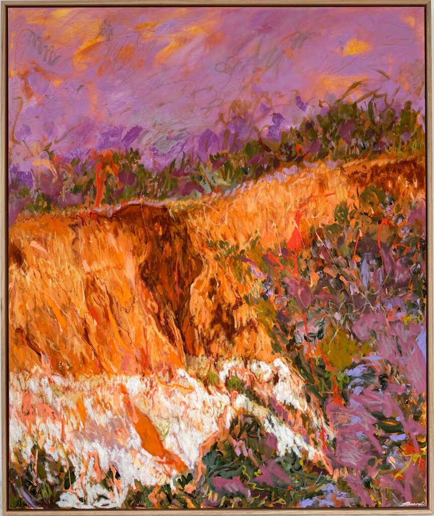 Jessie Beard is an abstract landscape artist from Old Bar, NSW. Her works are observations of nature, with a particular interest in the rejuvenation and constant changes across the seasons within her local region and beyond. Jessie’s artistic process begins with experience, immersing into her surroundings, documenting and savouring what can be carried through the start to finish journey of an artwork. Through euphoric interpretations that accentuate colour, movement and layering until fine detail, a piece can reveal the many stories bound to a landscape of both the physical environment and personal memories.