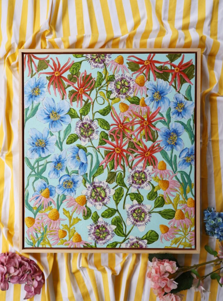 Before pursuing her passion for painting, Kate worked as a domestic violence social worker, however, she now paints full-time from her home studio. In addition to creating her own artwork, Kate teaches art classes and co-runs a business called Bloom Art Experiences. Through this business, Kate brings floral still life painting workshops to beautiful locations across Australia, giving others the opportunity to learn and create art in inspiring settings.