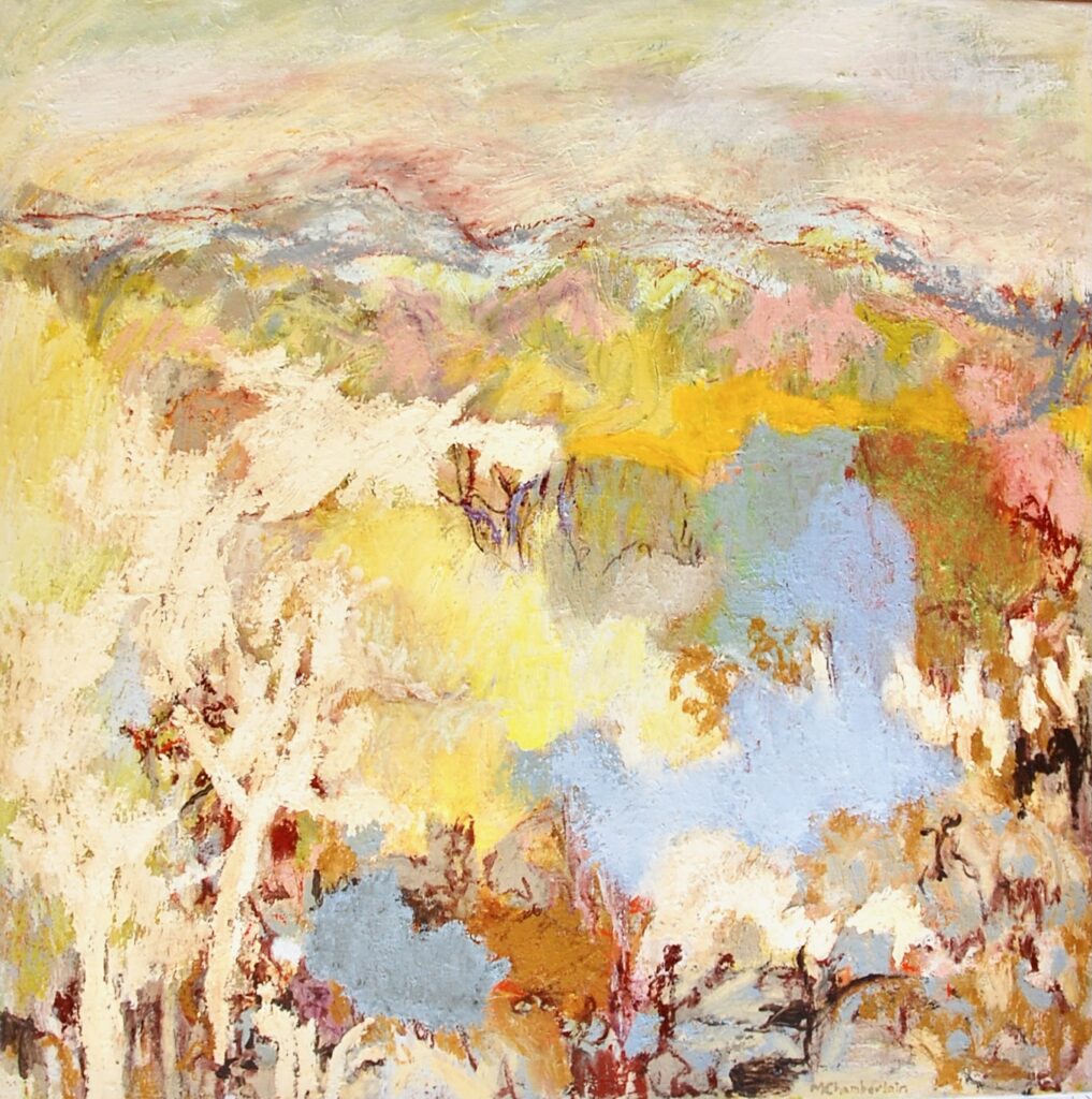 I work in both acrylic and oil paints. For me quick drying acrylics offer greater freedom when working fully in an abstract genre, while oil painting is a slower medium, more suited to my semi abstract landscape works which required a more measure and structured approach.