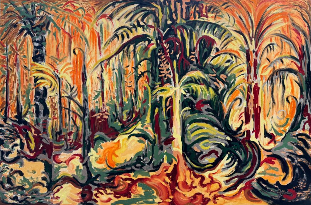 Mina Afra is an Iranian-born, Melbourne-based painter whose work explores the emotional and energetic resonance of landscapes. Rather than depicting observed scenes, she uses bold colour and interwoven forms to express felt experiences—fluid, intuitive, and interpretive. Originally trained in Graphic Design at Tehran University of Art, Afra is a self-taught painter and has been practising full-time since 2020.