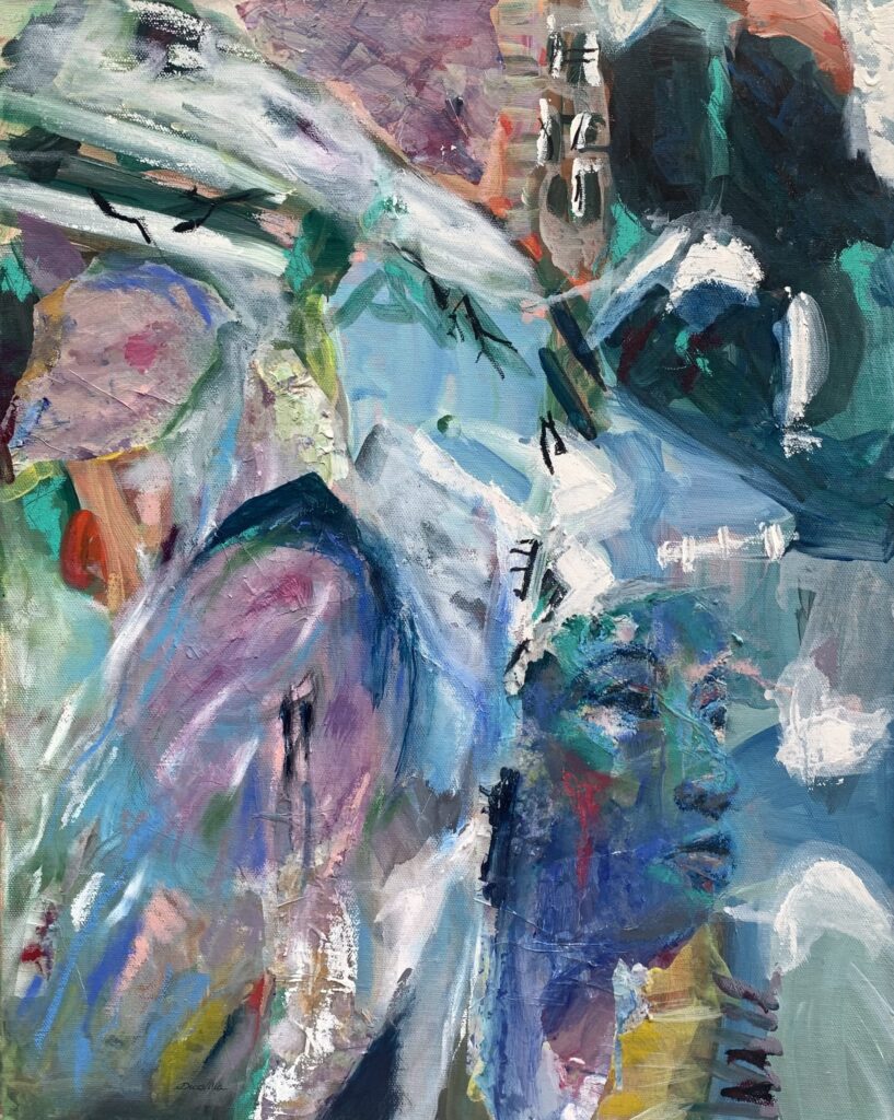 As a mixed media artist, I choose my materials based on the needs of each painting and the journey it takes me on. I like having a versatile toolkit, allowing me to draw on different techniques as necessary. Acrylic paint is where I feel most at home—its flexibility and immediacy suit my process—but I have a deep love for watercolour, drawn to its luminosity. Collage adds a layer of whimsy and unpredictability that has an endearing quality that I also enjoy.