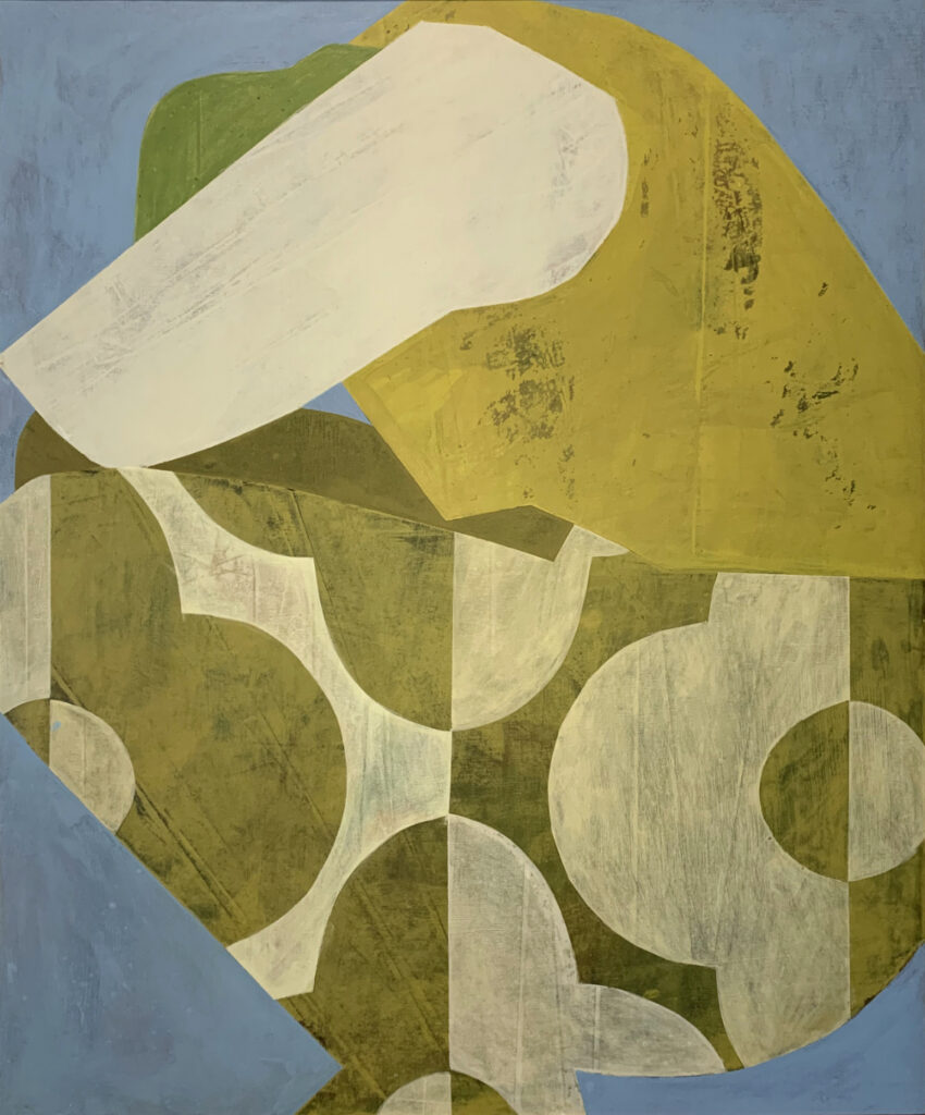 Sarah’s artist process usually begins with blues or rock’n’roll music filling the studio and playing with paper collage or drawing in her sketchbook. The designs are then transferred to the computer so Sarah can manipulate the colours and composition. Through her playful exploration of the cut up shapes and colours, Sarah reveals a series of intimate moments and shared interactions between these faceless figures.