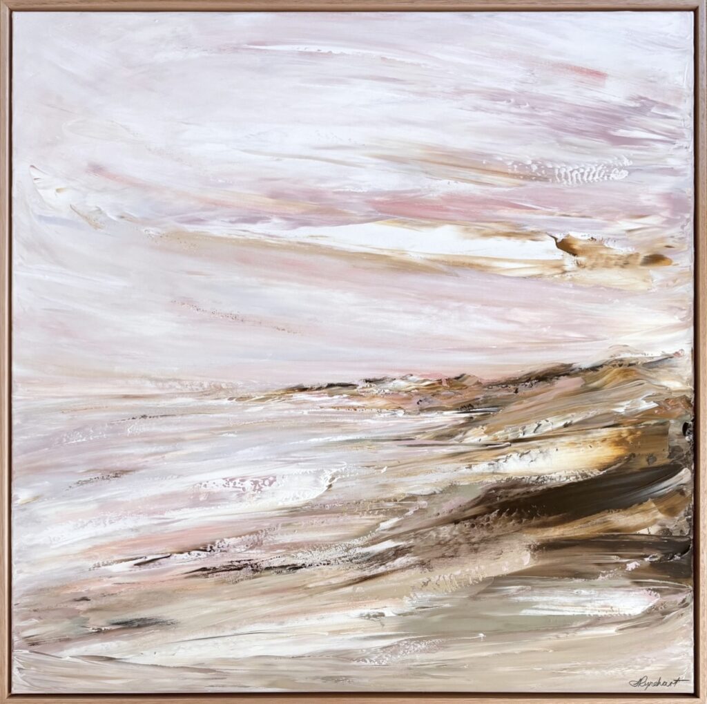 Sharon Rynehart is an impressionist palette knife artist recognised for her flowing, expressive captures of the sea, land and sky. An Interior Designer and Colour Consultant by trade, she gave up her career in the industry after health issues in 2018. As a form of Physiotherapy to help regain movement on one side, she was encouraged to paint, and hasn’t put the palette knife down since.