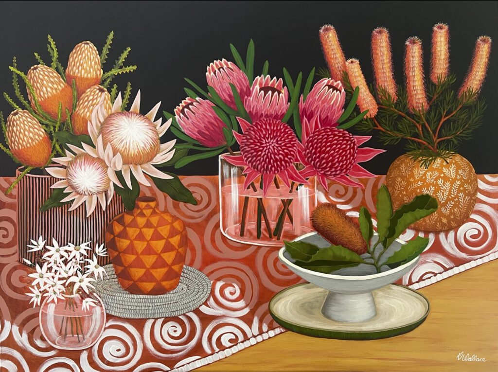Vanessa is a Brisbane-based artist whose work explores the intersection of still life arrangements and the innate beauty of domestic spaces. With a background in ceramics, developed over several decades of working with clay, Vanessa transitioned to painting a few years ago, finding a new medium that complements her ongoing fascination with decorative vessels, botanicals, and the beauty of the everyday.